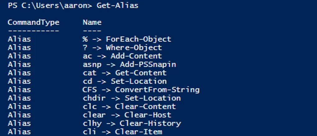 PS C:\Users\aaron> Get-Alias -Definition Get-Process