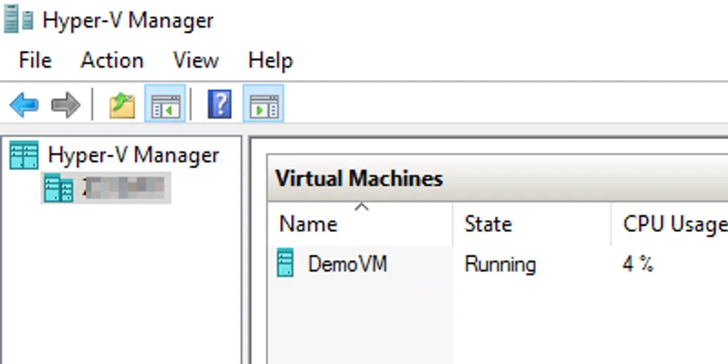 To continue with our lab setup, we need to return to the GUI. In your start menu, find the desktop app Hyper-V Manager and open it. This is an mmc snap-in, so you can also run mmc and add the snap-in.